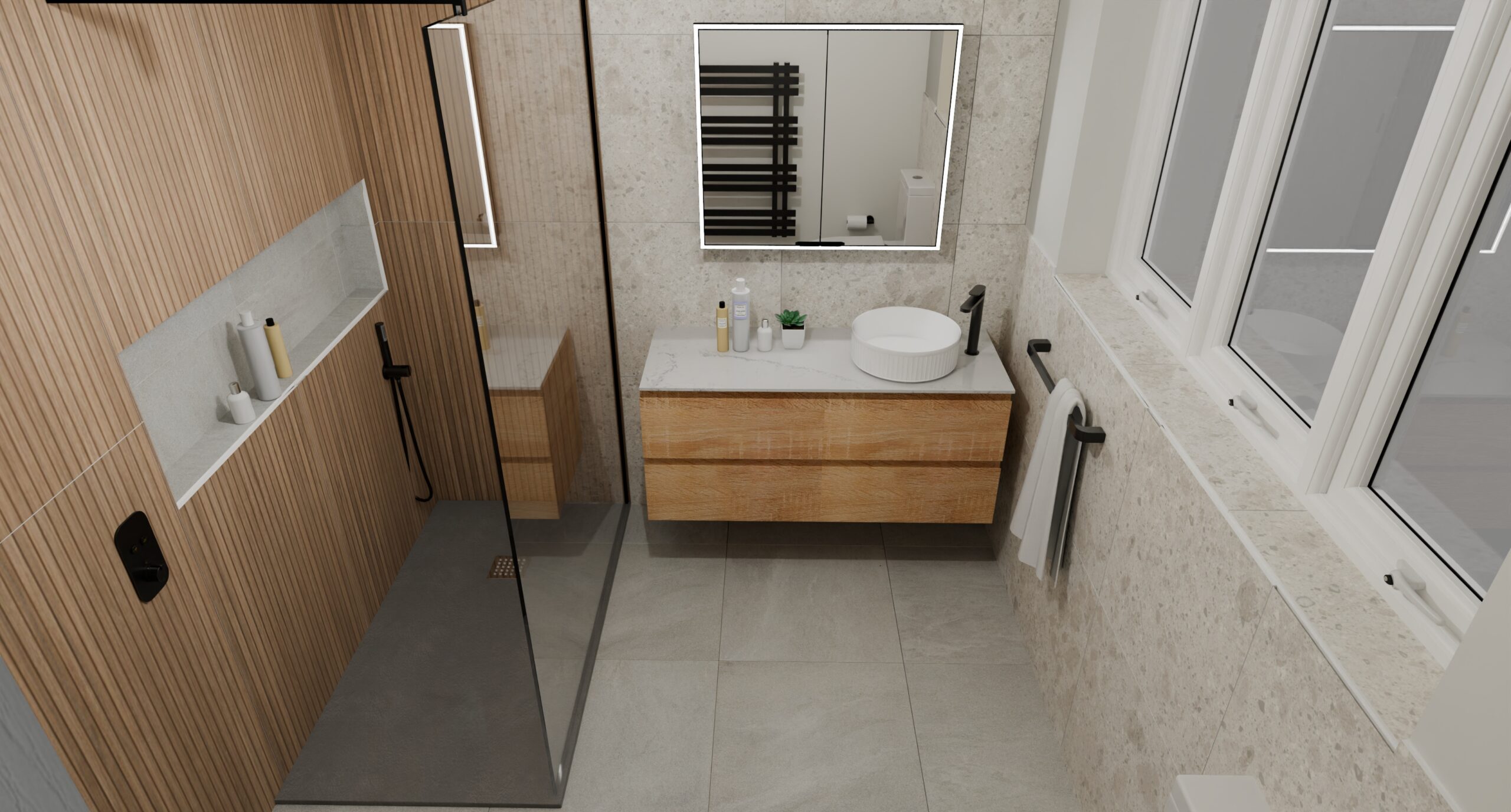 This is the part clients love: you don’t have to guess what it’ll look like. Your 3D bathroom design lets you visualise the space properly — layout, proportions, finishes and the overall mood — before you commit.